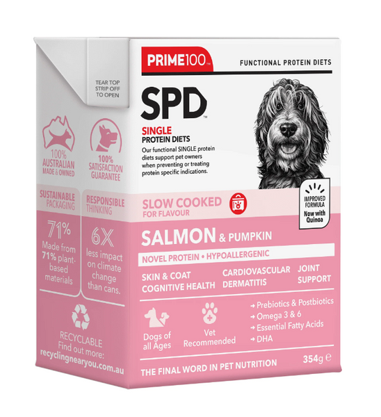 Slow Cooked Salmon & Pumpkin is a novel, hypoallergenic, single protein diet created for dogs with suspected food sensitivities, skin allergies or digestive issues. Complete and balanced for dogs of all ages, includes a natural sources of essential fatty acids to support cognitive and cardiovascular health. This diet can be used for elimination diets, food trials or as a maintenance for dogs with no allergies.