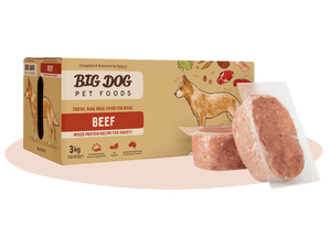 Beef is the hero ingredient in our Big Dog Beef Formula. Using the highest quality, human-grade Australian beef, chicken and lamb, this delicious recipe is a mouth-watering mix of muscle meat, vitamin and mineral-rich offal and nutrient-dense seasonal fruits and vegetables. With the addition of extra ingredients like ginger, garlic, flaxseed, whole eggs, kelp, wheatgrass, probiotics and prebiotics, your dog will be as healthy and happy as you’ve ever known them!