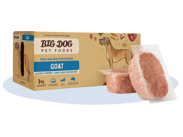 Goat is a high quality source of easily digestible protein for dogs and a great option for dogs who are allergic to other meat proteins. Organic, pasture-fed, Australian goat used in this single-protein diet has had no exposure to environmental chemicals, making it even more suitable for dogs that suffer from allergies. As with all of our diets, this recipe wouldn’t be complete without a balanced blend of nutrient-dense seasonal fruits and vegetables, as well as Big Dog’s special extra ingredients. This recipe includes wheatgrass, cold pressed ground flaxseed, hemp seed powder, whole eggs, kelp, probiotics, prebiotics and garlic for added nutrition and goodness for optimal health and wellbeing.